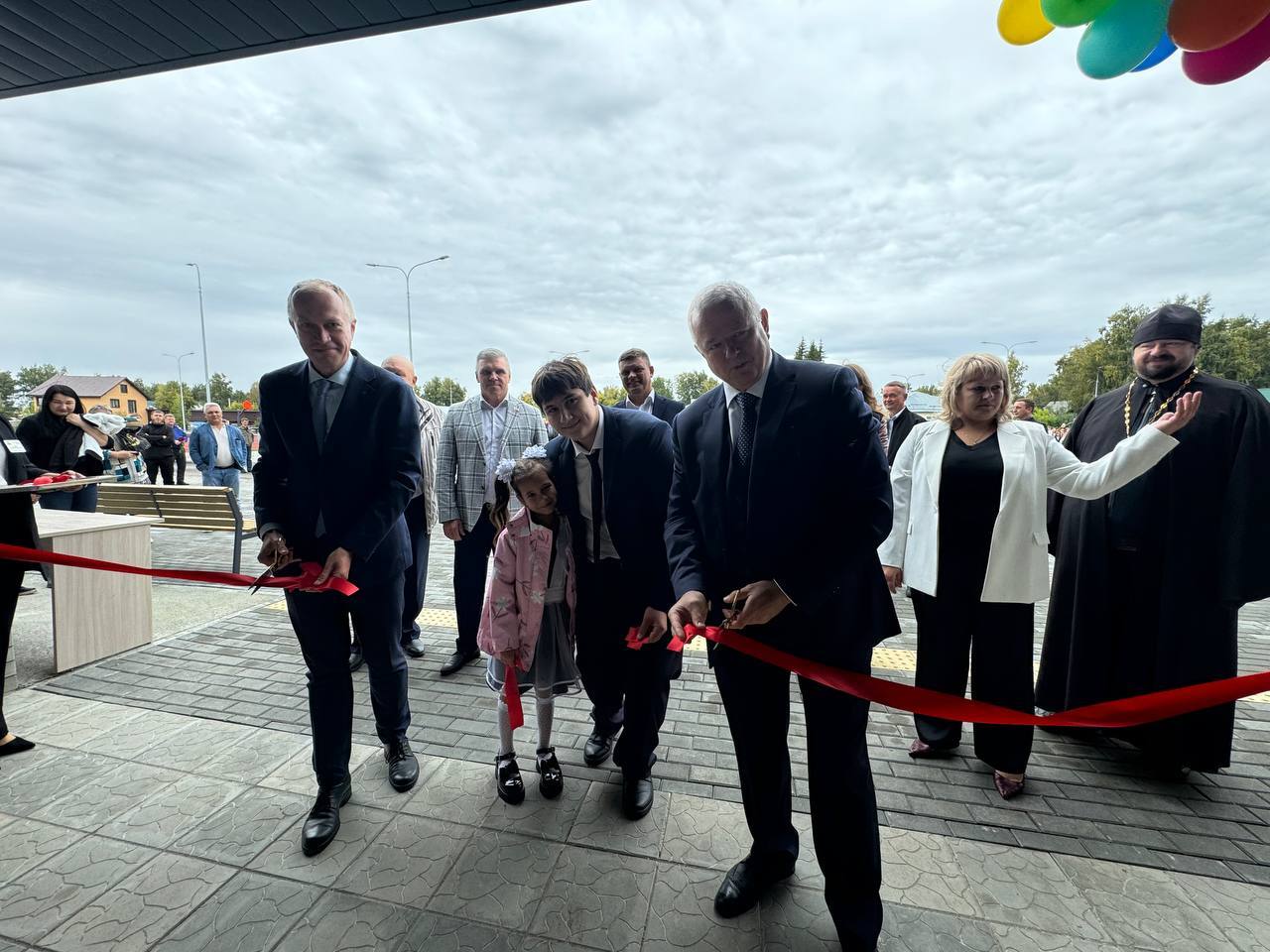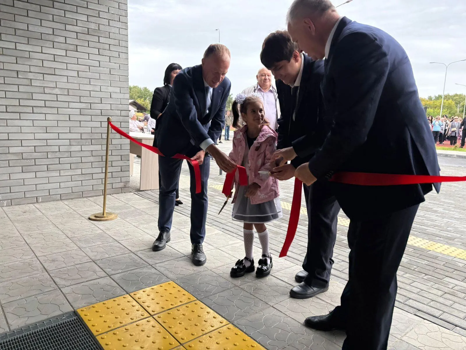 Директор по строительству ООО «АТМ Групп» Игорь Фаламеев вручил Татьяне Габидулиной символический ключ от новой школы, затем приглашенные гости вместе с первоклассницей Аминой Шукюровой и одиннадцатиклассником Никитой Пахиловым торжественно разрезали красную ленту.