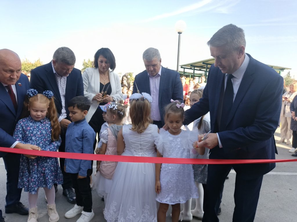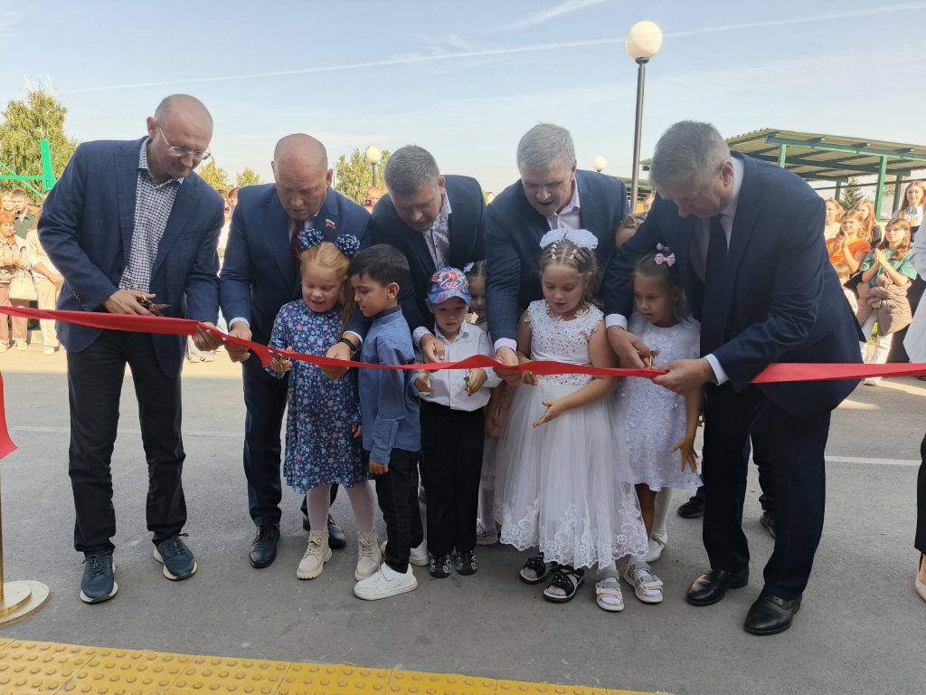 Прозвучали торжественные речи, и настал долгожданный момент — почетные гости перерезали красную ленту, открыв вход в новое образовательное учреждение.